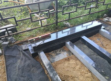 На данном участке клиент пожелал вместо уже существующего оформления места захоронения изготовить два симметричных памятника и покрыть территорию рядом с ними брусчаткой.