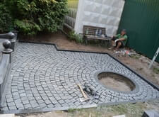 Укладка гранитной брусчатки,